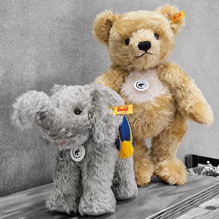 シュタイフの創業140周年を記念して制作されたパディのスペシャルバージョンです。世界中の人々に愛され続けている名作パディを、きれいなブロンドモヘアを使いながら大きめなボディで表現しています。かわいらしい表情に、色分けされた胸元のホワイトモヘアがチャーミングです。首と手足にジョイントが入り、様々なポーズを楽しめる5ジョイントです。