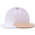 3つの円形を組み合わせた淡いピンク色の台屏風は飾るひな人形のかわいらしさを引き立ててくれます。